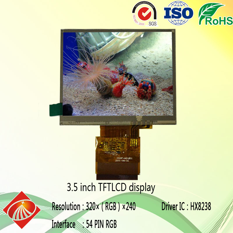 3.5寸TFT彩屏_3.5寸液晶屏_320x240分辨率_彩色TFT模塊_54pinRGB接口_驅(qū)動(dòng)HX8238_3.5寸電阻觸摸屏